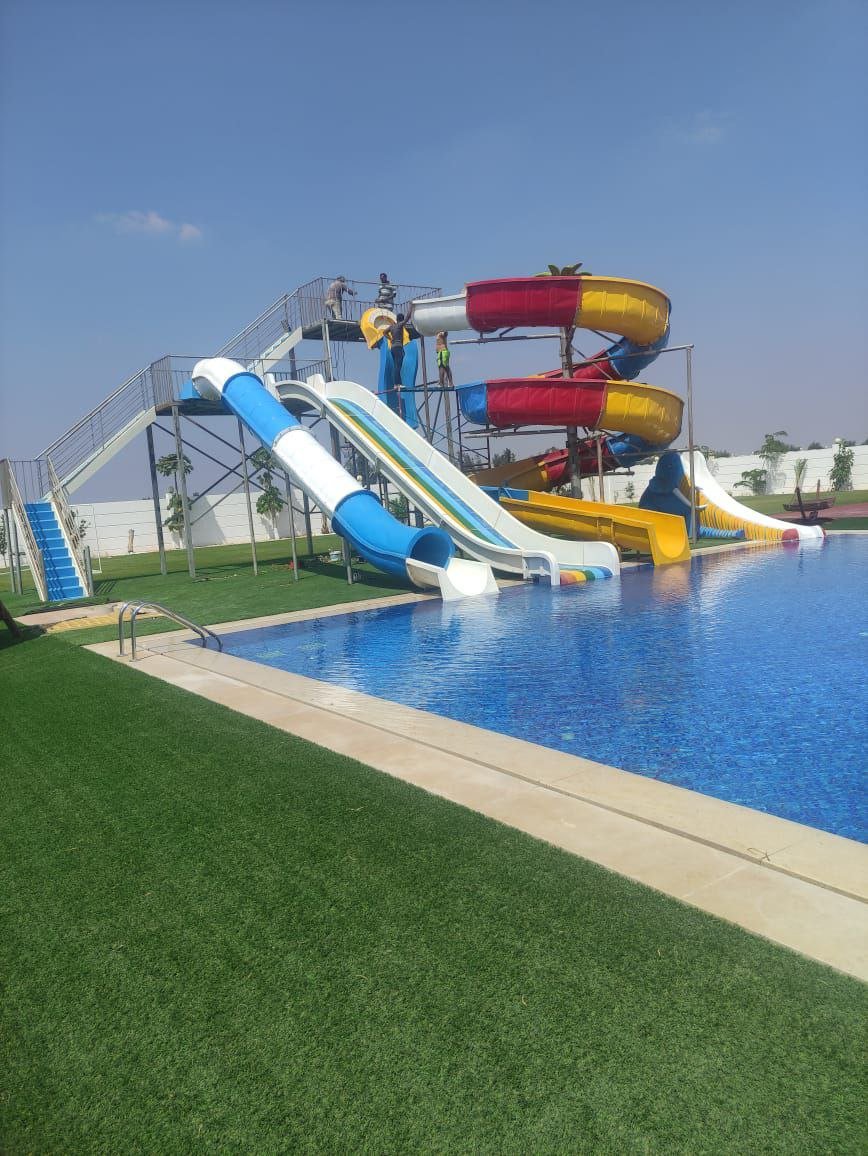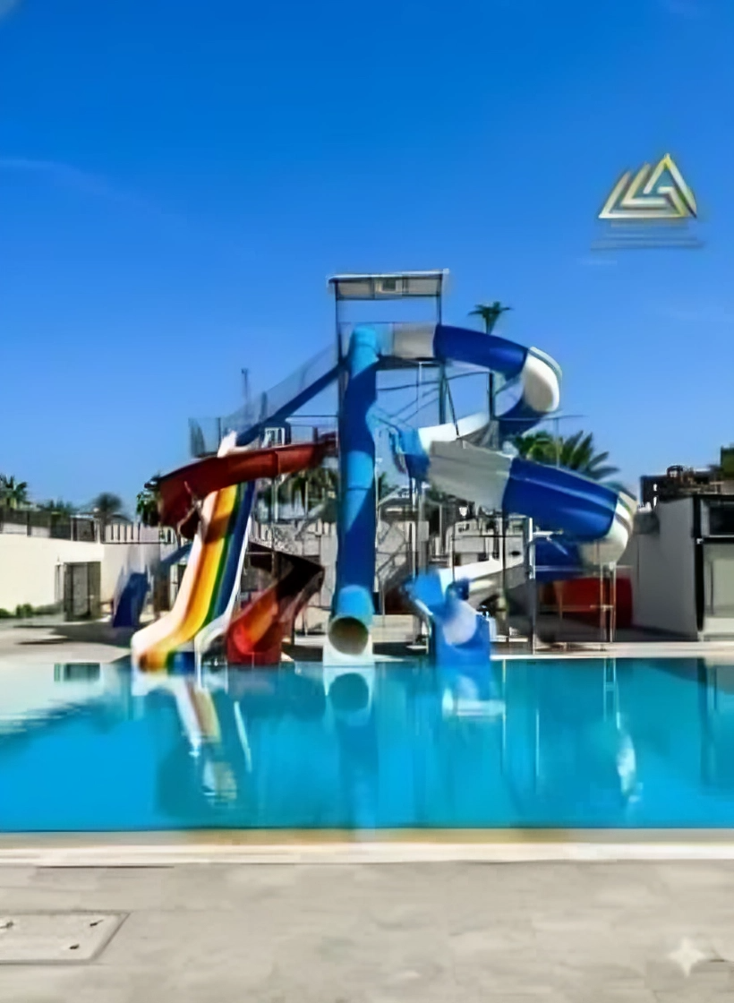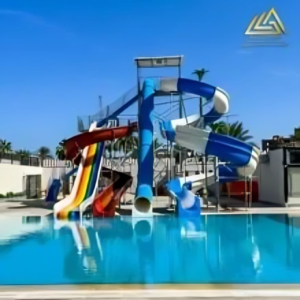 زحاليق فيبر جلاس منتج ترفيهي متكامل من شركة الاهرام للفيبر جلاس يجمع بين زحاليق فيبرجلاس 6 متر حلزوني مع شلال ثلاثي و شلال عريض فيبر جلاس بالإضافة إلى أنبوب ألعاب مائية مصمم بجودة عالية.