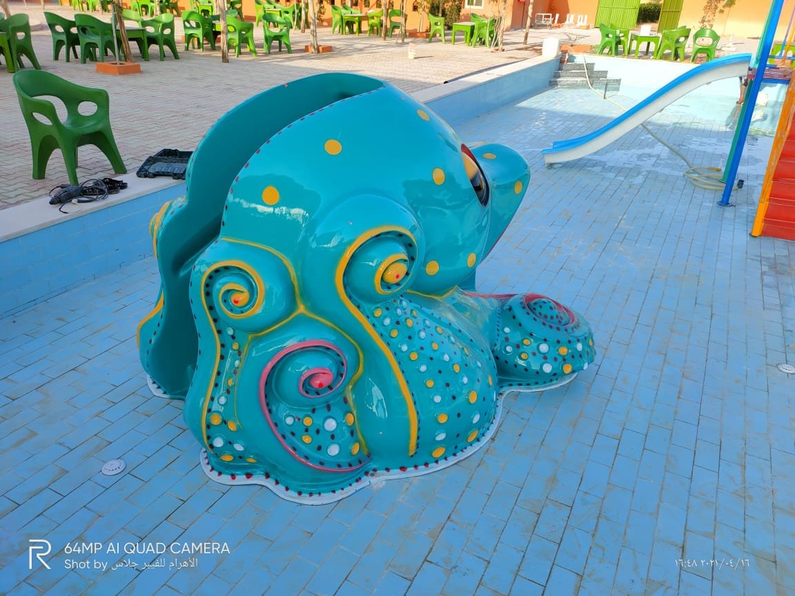 نوع المنتج : زحليقة شكل بابى اخطبوط العاب مائية فيبر جلاس