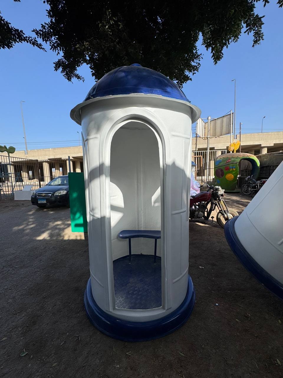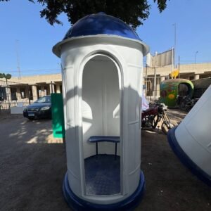 يتميز الكشك بتصميم دائري عملي يمنح الحارس رؤية كاملة، مما يجعله ضمن أهم أنواع اكشاك امن دائري ومربع فايبر جلاس للبيع في الأسواق المصرية.
