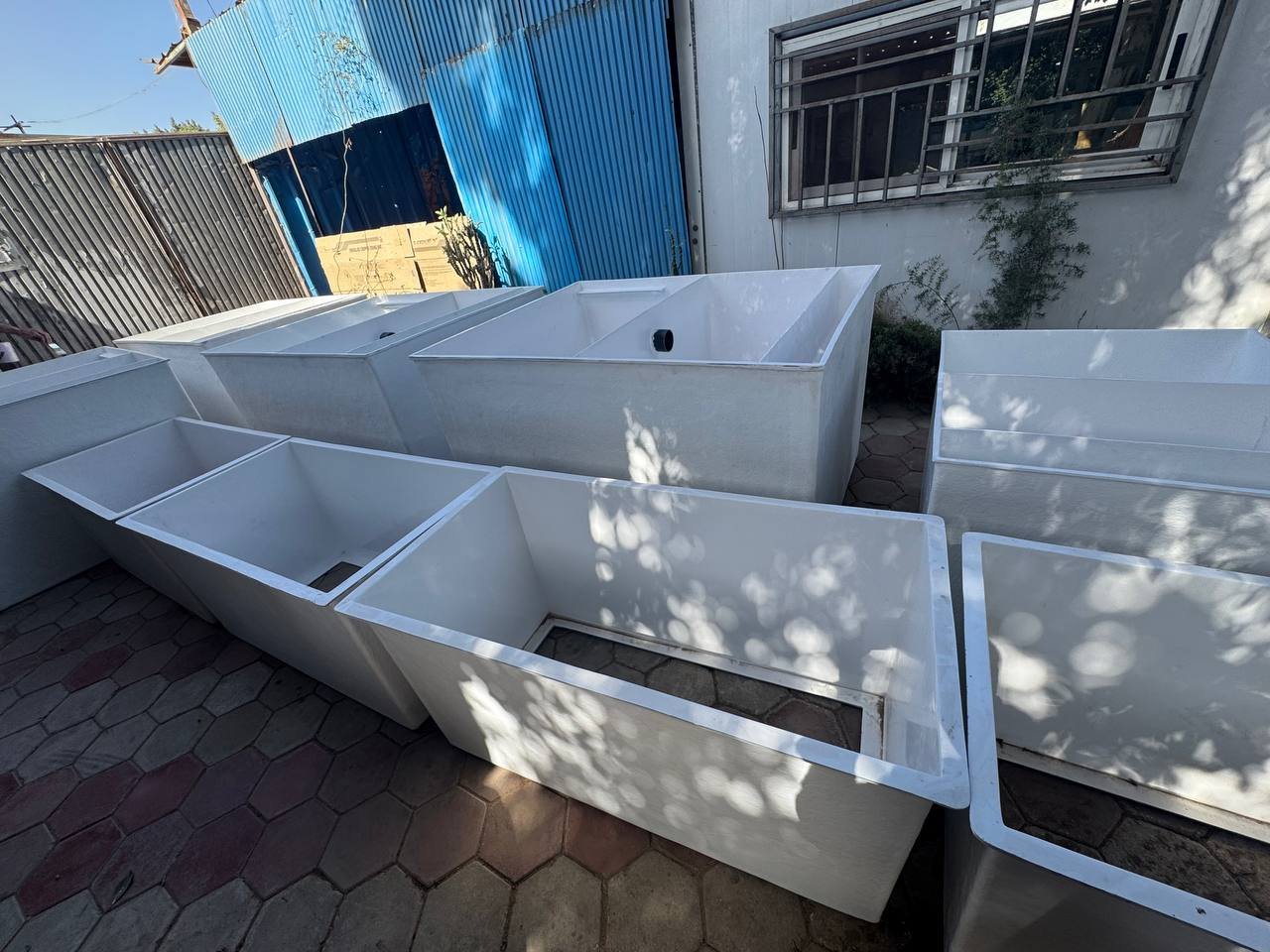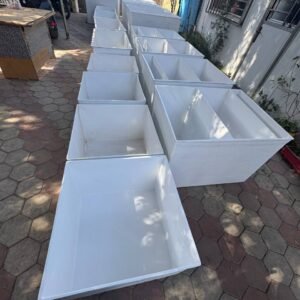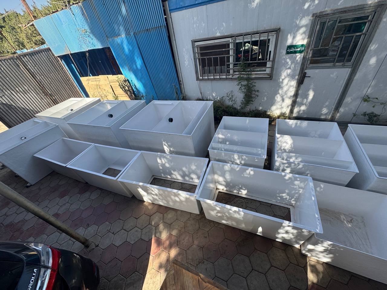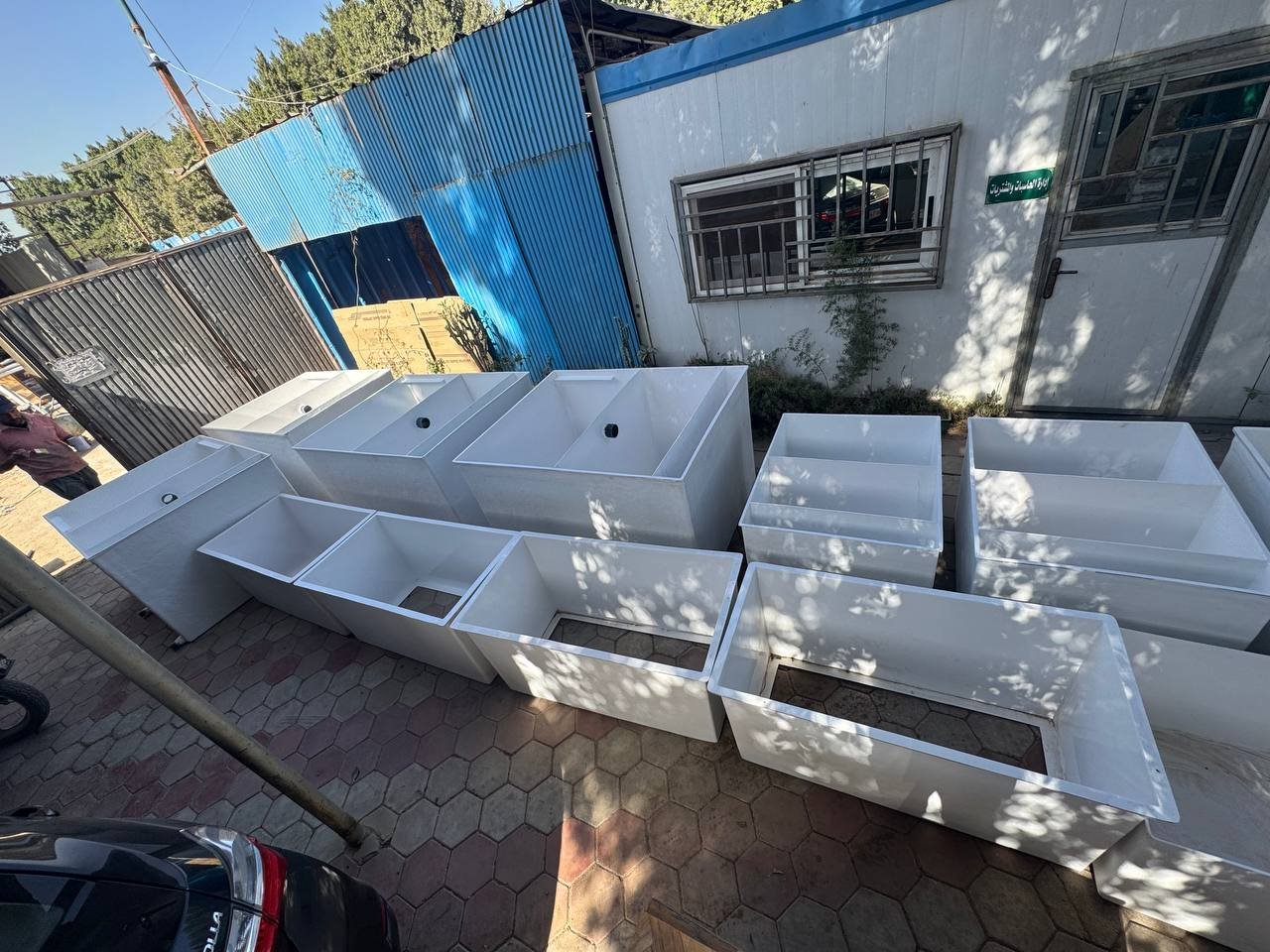 - كما يوجد لدينا قسم خاص لعمل خزانات واحواض مزارع الاسماك ومستطيل احواض مزارع الاسماك يوجد منها ما هو مربع وما هو دائري