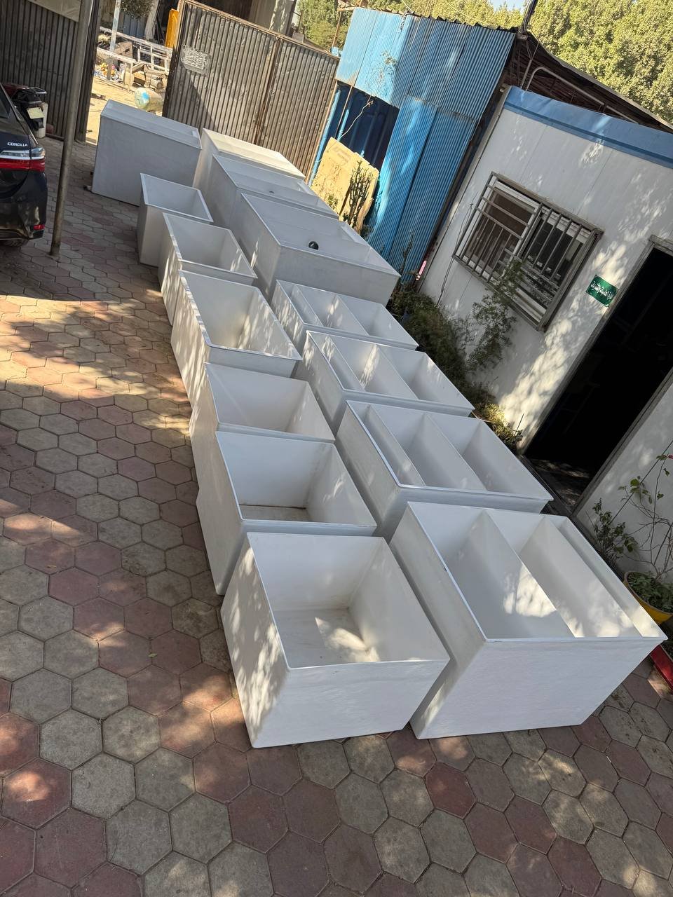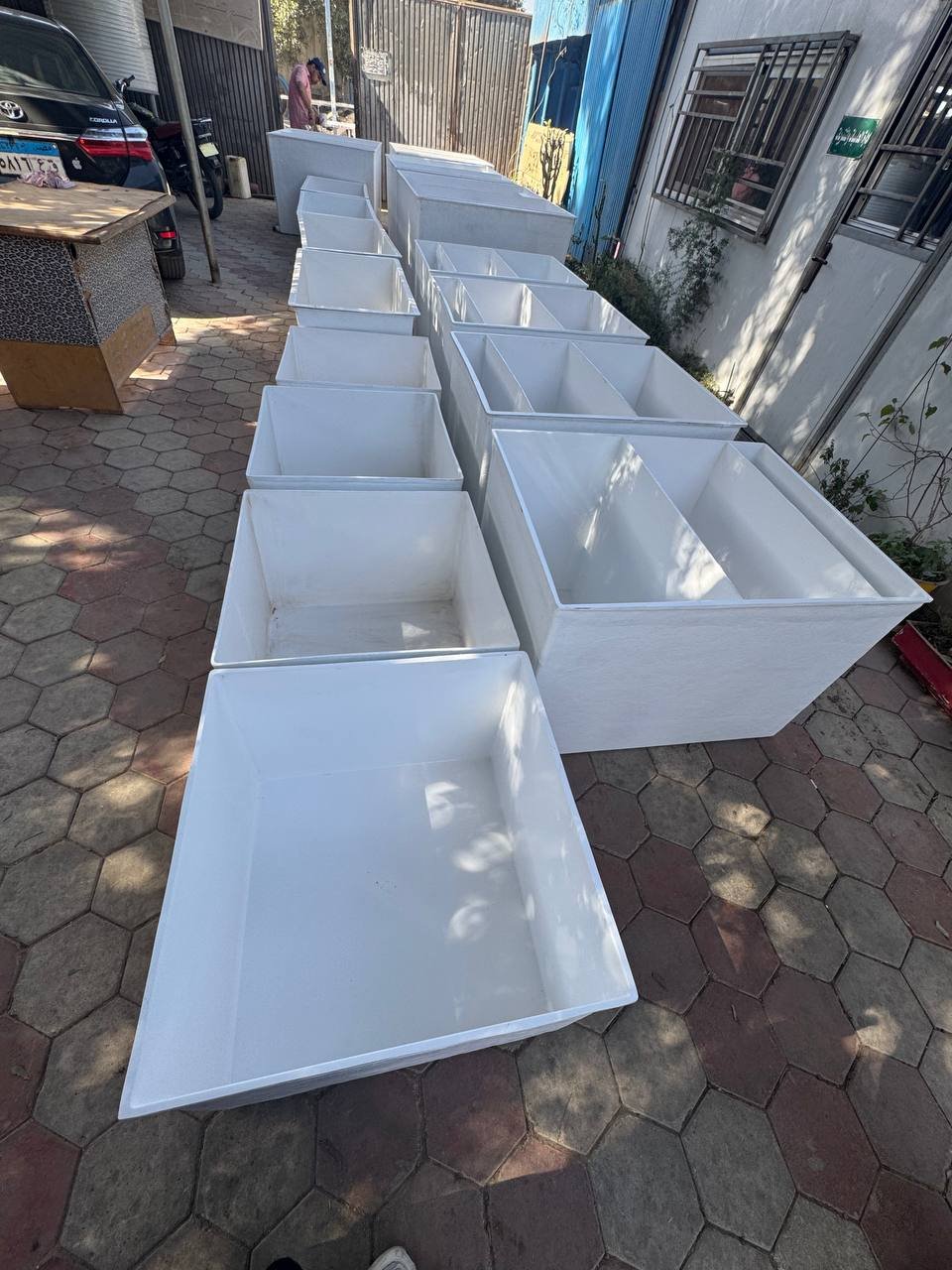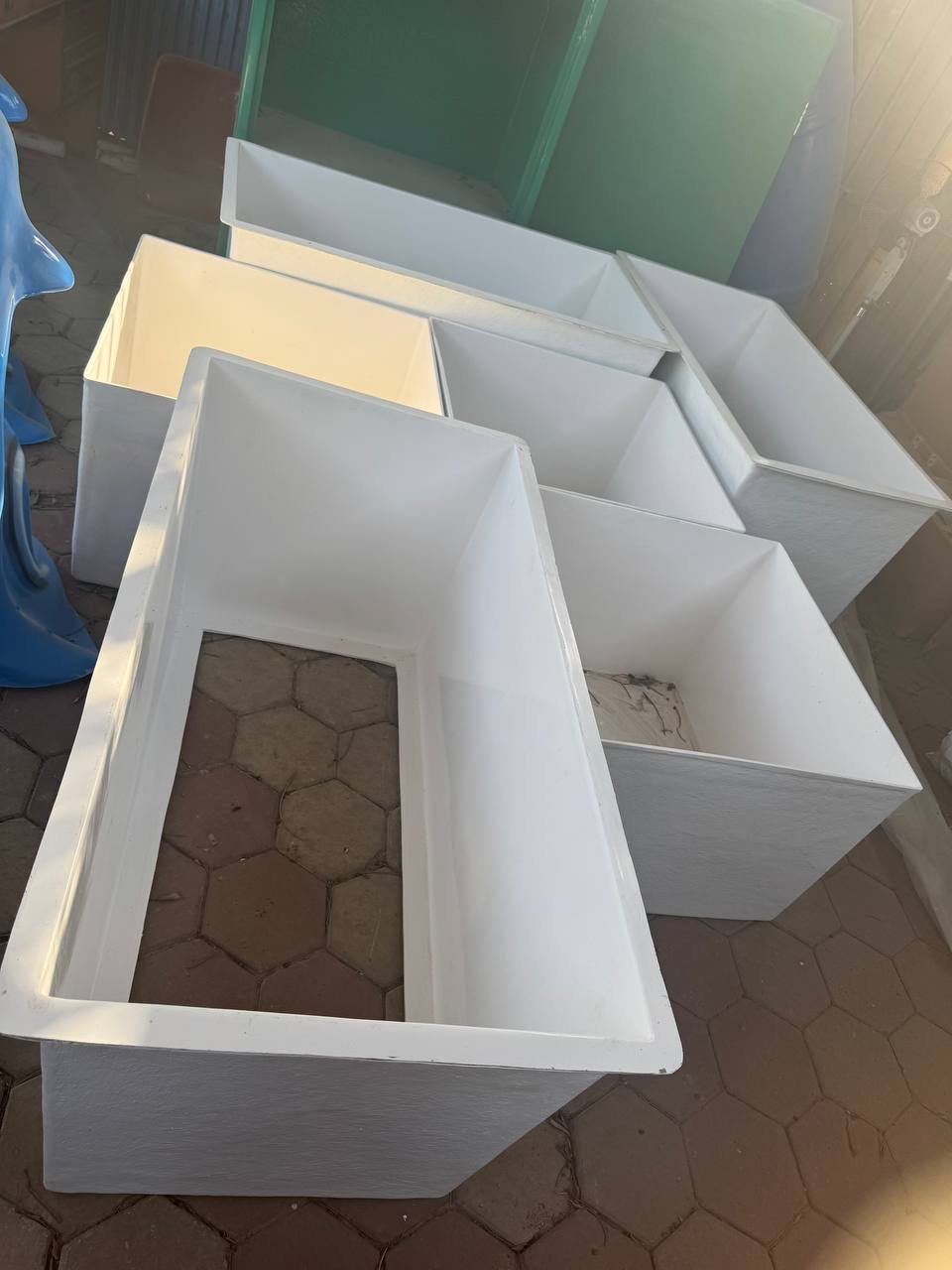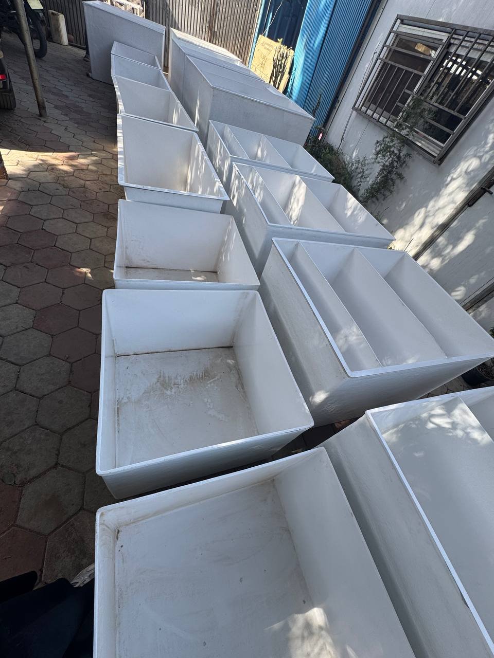 - كما يوجد لدينا قسم خاص لعمل خزانات واحواض مزارع الاسماك ومستطيل احواض مزارع الاسماك يوجد منها ما هو مربع وما هو دائري