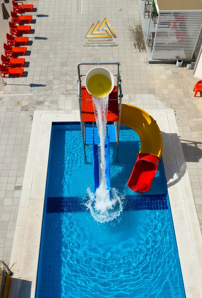 تصميم اكوا بارك فيبر جلاس 12 متر حلزوني وشلالات