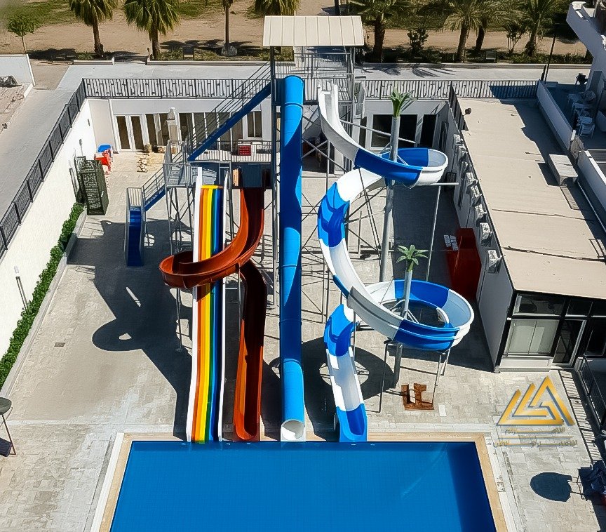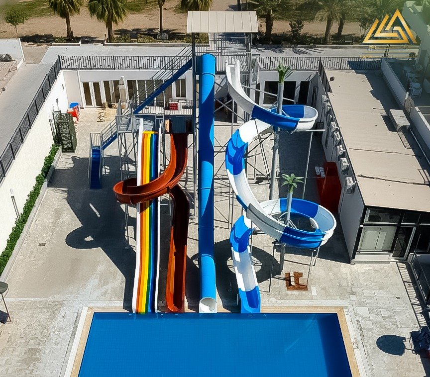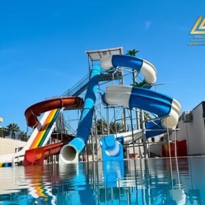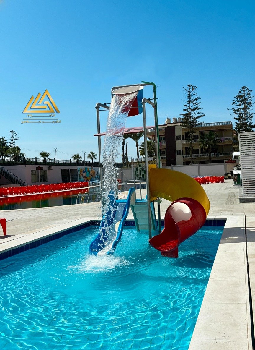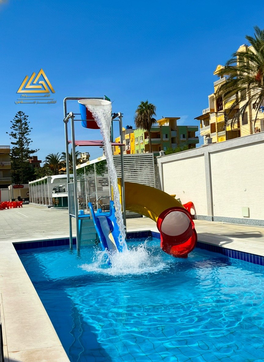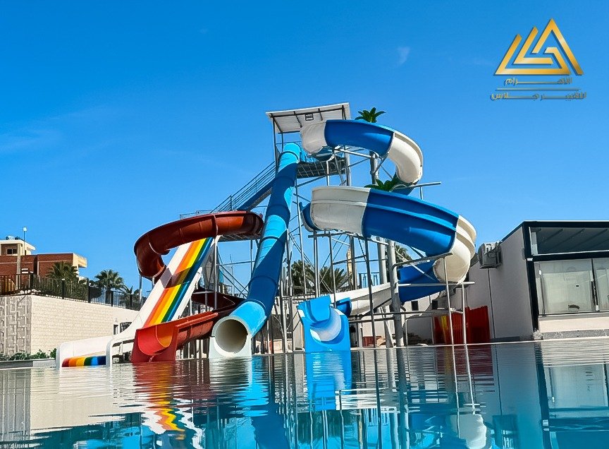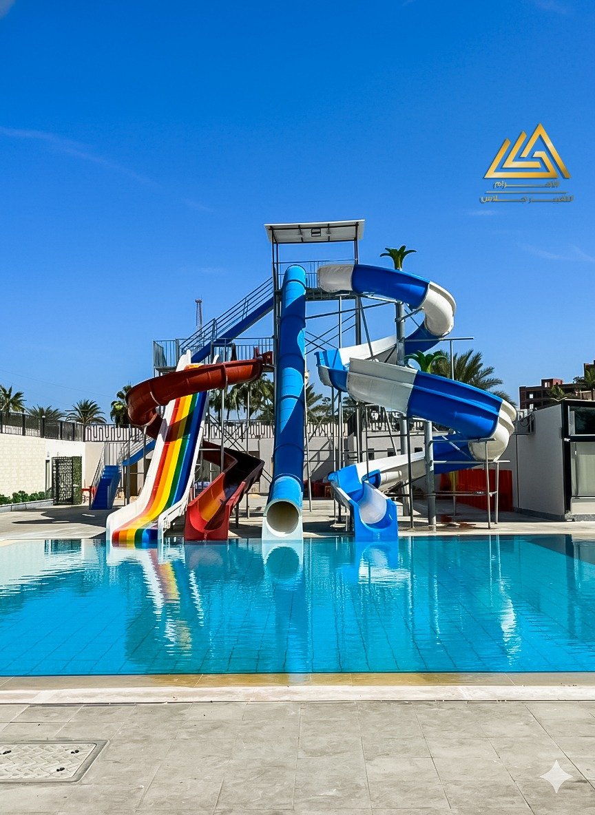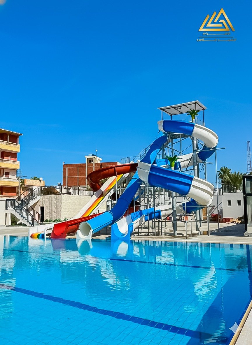 اكوابارك فيبرجلاس ارتفاع 6م اتنين حلزونى واحد امبوب شلال عريض وفردى