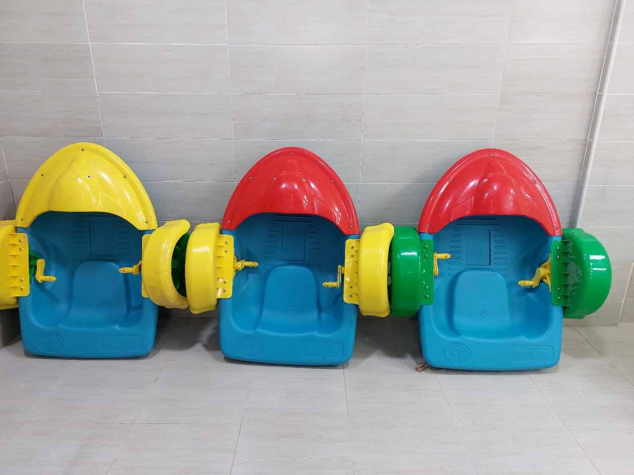 يتميز بتصميم مدمج يسهل تحريكه داخل الماء، مع إمكانية تشغيله يدويًا عبر دواسات مريحة تناسب الأطفال.