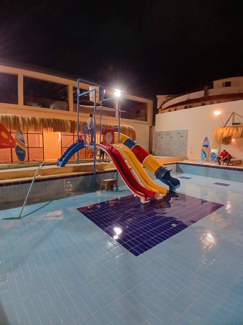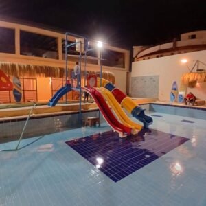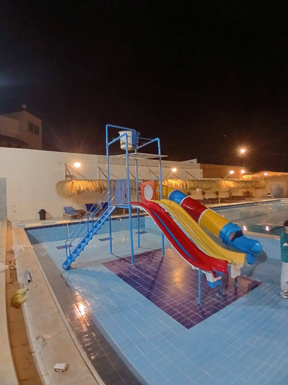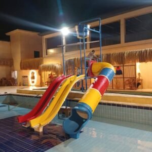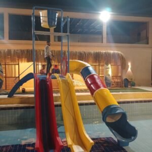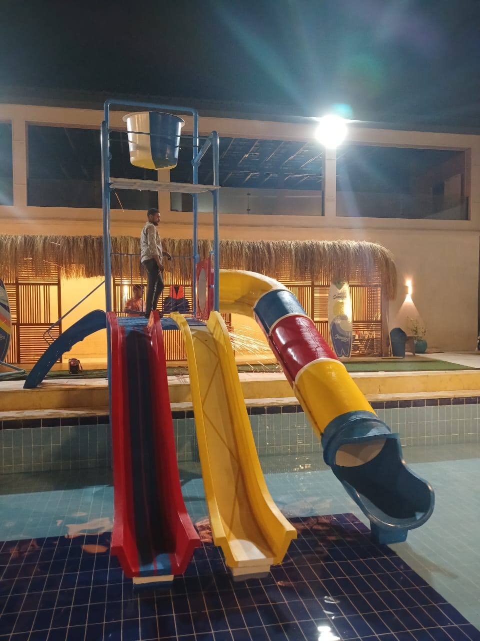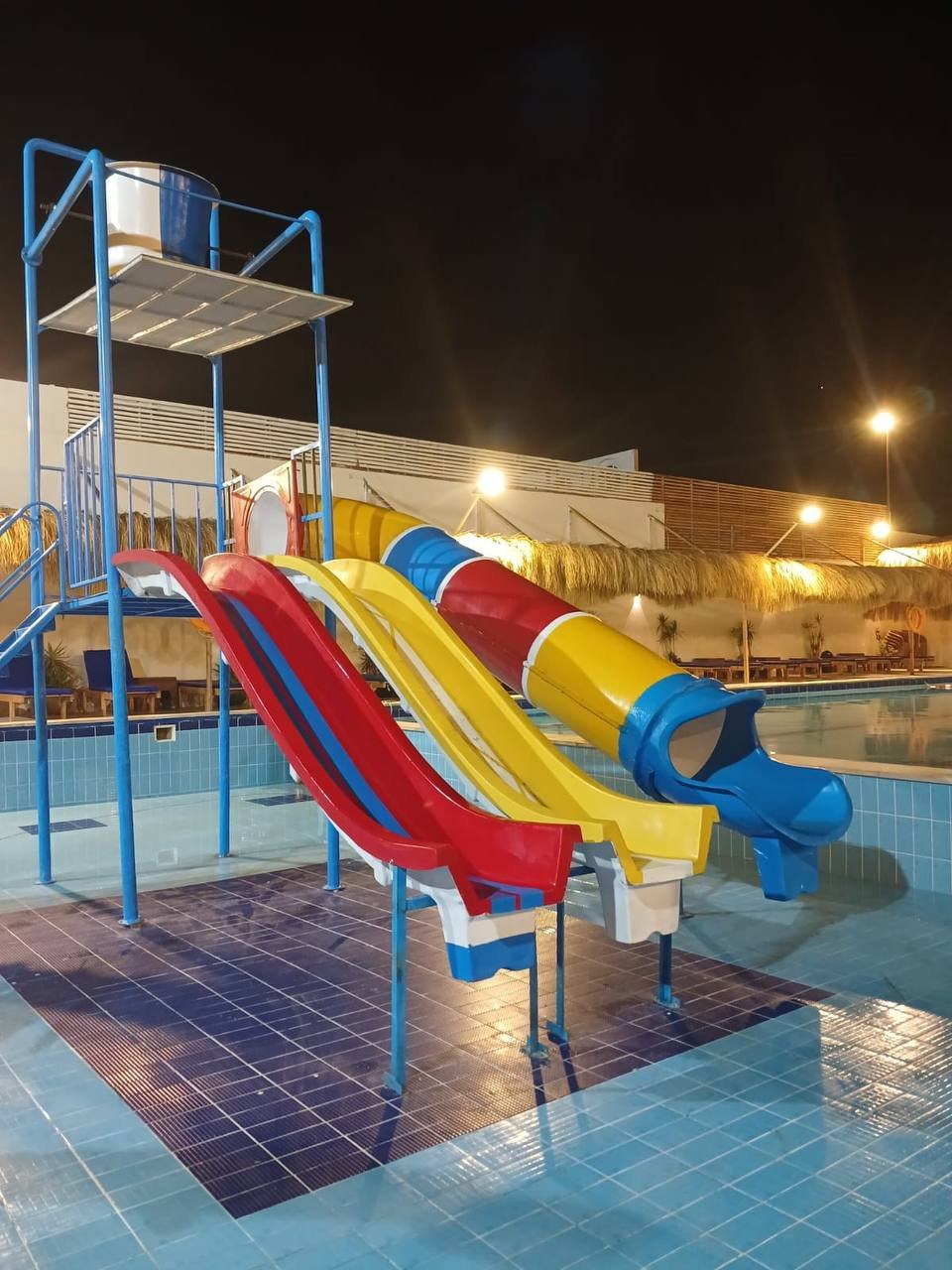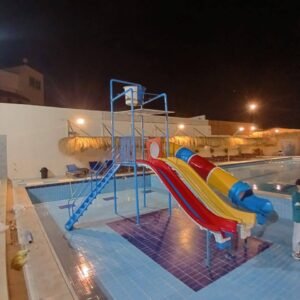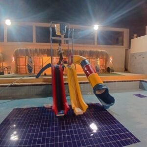 - التصميم: ألوان زاهية مخصصة للأطفال، أشكال مبتكرة (شرائح مائية، منزلقات، نوافير صغيرة)، أسطح ملساء خالية من الحواف الحادة لضمان الأمان.