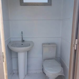 - Mobile bathrooms made of fiberglass reinforced with fiberglass painted with smooth gelcoat that can withstand weather conditions.